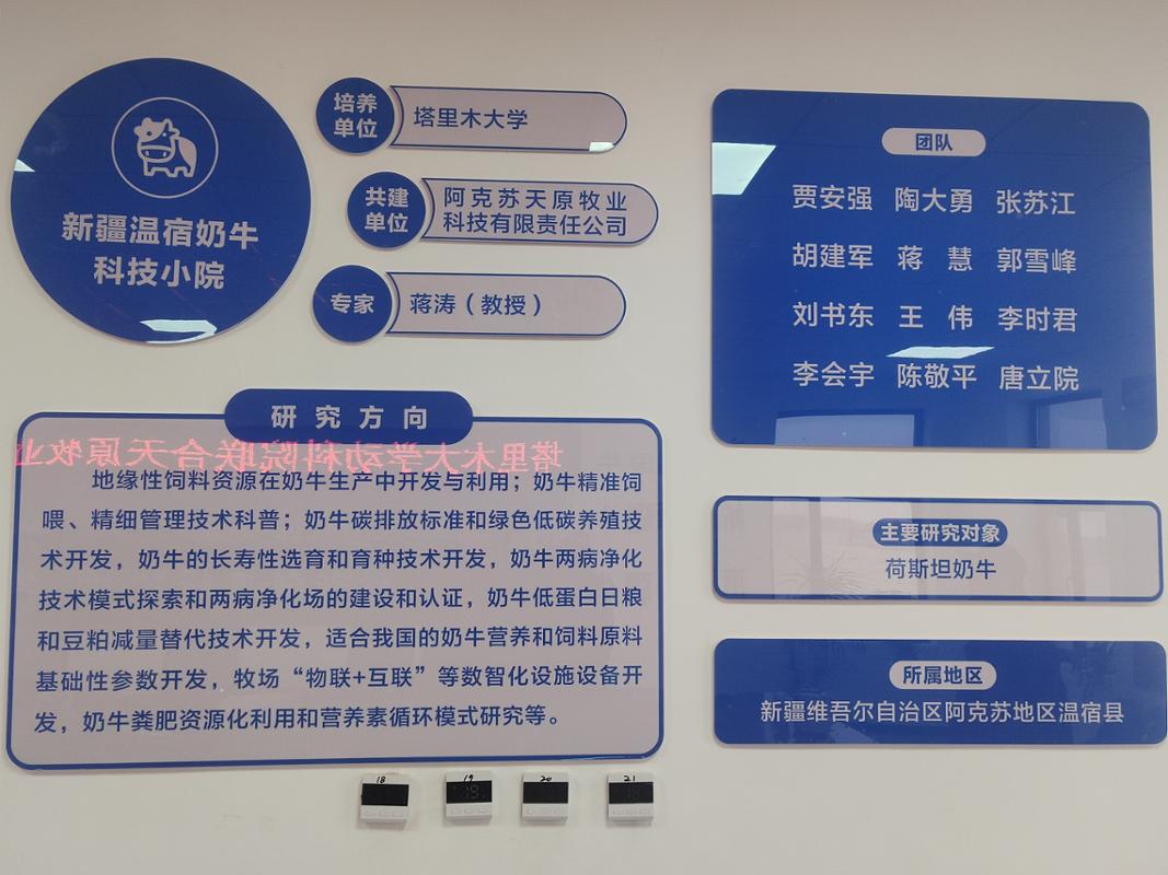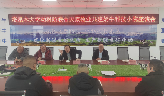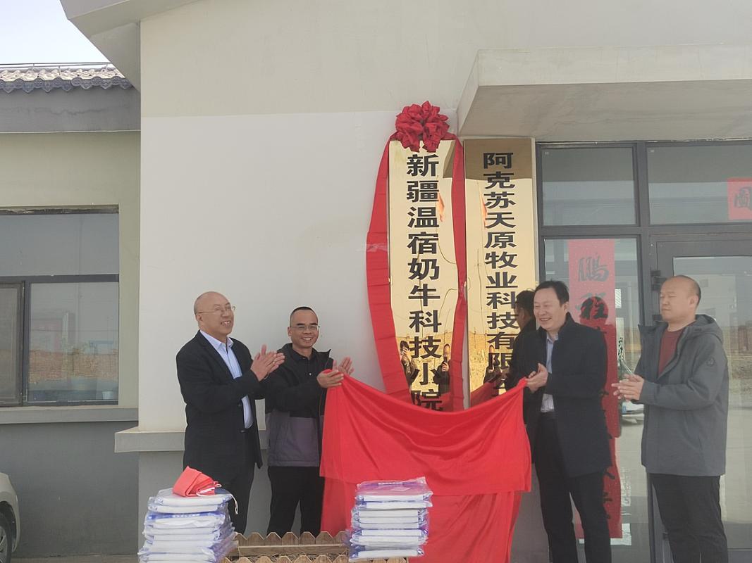 为深化产教融合,推动教育链、人才链与产业链、创新链的有效衔接,公司yl23455永利经理井波与奶产业技术体系岗位专家蒋涛教授及团队陶大勇教授、刘书东教授、研究生李睿岩一行前往阿克苏天原牧业有限公司,共同商讨“科技小院”的建设。2026年3月8日,公司yl23455永利与阿克苏天原牧业有限公司(以下简称天原牧业)合作共建的“新疆温宿奶牛科技小院”揭牌仪式在企业所在地举行。