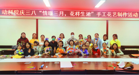 3月8日下午,动科院全体女职工齐聚动科楼214开展以“情暖三月,花样生活”为主题的手工花艺制作活动,用自制的花朵来庆祝三八妇女节。