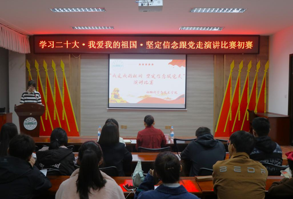为深入学习宣传贯彻党的二十大精神,3月17日晚,动科院团委举办“学习二十大·我爱我的祖国·坚定信念跟党走”主题演讲比赛初赛。