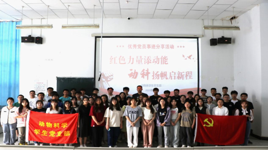 为进一步用身边人、身边事激励和动员广老员工对标先进、担当作为,看齐榜样、跟党奋进,5月20日,动科系动科员工党支部在综合楼教室开展“红色力量添动能,动科扬帆启新程”优秀党员事迹分享活动。由骆军芳、张菲、郑焱等9位优秀党员同志进行分享,动科2022级、草科2022级全体同学参加。