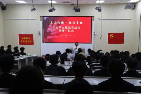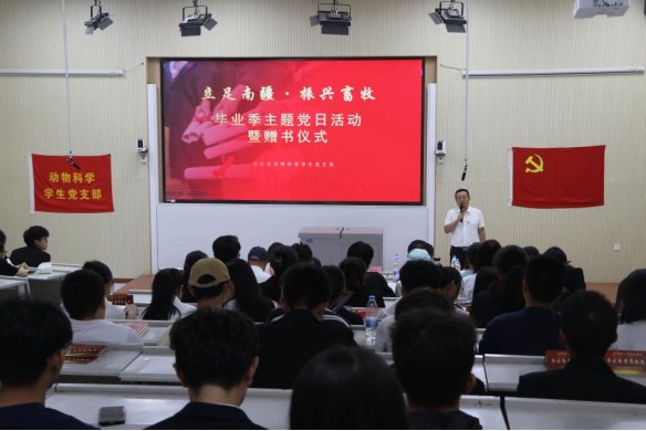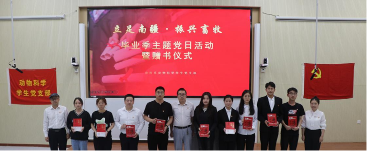 党旗引领铭初心,奋楫扬帆再出发。为深入学习把握习近平新时代中国特色社会主义思想,共同践行初心使命,延续共产党人精神血脉,厚植爱党爱国情怀,树立为人民服务的远大抱负,动科系党总支于6月6日在综合楼阶梯教室1开展毕业生党员欢送仪式。公司党委副书记魏晓柳、后勤保障中心党总支副书记邢金明、动科系党总支书记许贵善、党政办主任缪建梅、动科系员工党支部书记姚亚玲、研究生党支部书记芮雪、动科系员工党支部副书记王式琴,动科系教工党支部、员工党支部党员代表和积极分子代表参加此次活动。