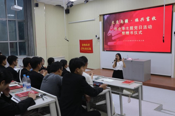 为进一步加强党员党性教育,强化党员思想自觉、政治自觉、行动自觉,引导毕业生党员坚定理想信念、继续发挥先锋模范作用、立足岗位做贡献,动科系动科员工党支部于6月6日晚上,在综合楼阶梯教室1开展“立足南疆·振兴畜牧”主题党课活动,此次党课由动科系党总支书记许贵善同志讲授,动科员工党支部全体党员同志参加。