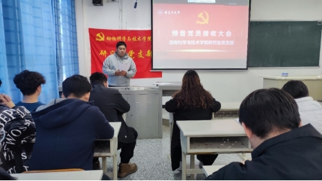 2023年11月8日,yl23455永利研究生党支部在综合楼101教室召开2023年下半年预备党员接收大会,会议以线上线下结合的方式召开,由啜力文同志主持,党支部书记芮雪同志和党支部副书记胡延波参加会议。