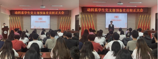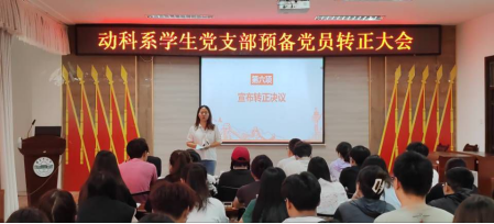 为进一步规范党员发展流程,保持党员队伍的先进性和纯洁性,为党组织注入新鲜活力,2024年5月13日,动科系员工党支部在动科楼318通过线上线下相结合的方式召开预备党员转正大会。支部书记姚亚玲、副书记王式琴和全体党员参加,会议由李祯同志主持。