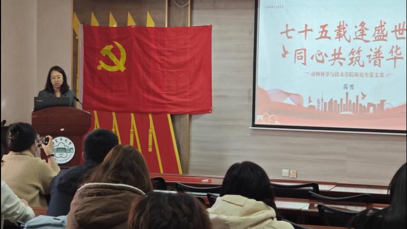 为全面贯彻落实党的二十届三中全会精神,庆祝中华人民共和国成立75周年,凝聚思想共识,激发奋进力量。10月29日,公司研究生党支部在动科楼318会议室开展“七十五载逢盛世,同心共筑谱华章”专题党课,支部书记芮雪同志主讲,全体在公司党员参加。